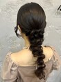 ツルッとした質感と、モコモコの質感が可愛い編みおろしスタイルです。