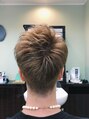 動きが出るようにしっかりと量感を調整しました。サイドはツーブロックを入れて、えりあしはスッキリ刈り上げました。前髪は上げても下ろしてもOKな長さで!*当店ではカラーはしておりませんので写真はモデルさんの髪色をそのままカットしております。