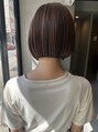 切りっぱなしボブに表面のカラーを少し明るめにして下のカラーを暗めにして陰影をつけて立体感を出しました。飽きない様にデザインで色々とバリエーションが出来るので気軽に相談に乗ります。クセが強い方はまず酸性ストレートがオススメです。