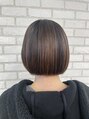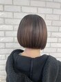 襟足をスッキリと短く切りおさめたボブスタイルです。横はアゴ下の長さにして、自然な前下がりのカットラインにすると、フェイスラインをカバーしつつ可愛い雰囲気に◎毛量が多い方、少ない方、癖にお悩みの方もご相談ください♪