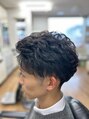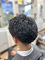 マッシュツーブロベースで、アイロンパーマでスパラルに巻きました。