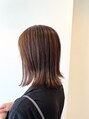 肩口に自然に沿う外ハネスタイルになりますカラーは明るめのブラウンで軽い印象になってます