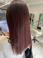 ブリーチなしで作るワインレッドカラー♪赤系の色を繰り返すとここまで綺麗に入ってくれます!トリートメントもしっかりしてるのでツヤツヤです!
