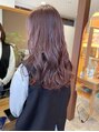 32mmの方で下の髪をワンカール外ハネ、表面の髪を2cm角の束で取って中間から巻いていただく、仕上げにスタイリングオイルを髪の多くなりやすい内側から外側に向かって揉み込んで頂ければ完成です◎