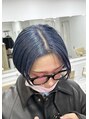 センターパートのショートスタイルは個性的なネイビーブルーのカラーリングで他の人と差をつけておしゃれに!