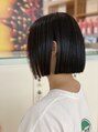 切きっぱなしボブ、ラインを強調することで全体にタイトになり小 顔 効果も発揮してくれます。スタイリングの仕方では外ハネにもできますよ。
