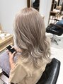 リタッチブリーチ後、ベースの明るさはキープしたまま黄味を抑えたハイトーンカラー