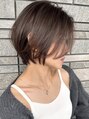 大人上品な切りっぱなしボブ。グレージュカラーで、透明感と女性らしい印象になれます。切りっぱなしボブ特有のぱつっとしたカットラインがわかるように毛先に重みがある仕上がり♪前髪は今っぽくぱつっとワイドバングでモードに。