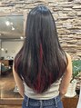 インナーカラーで髪をアップした時に綺麗にラインが出るようにしました胸元で毛先が動く事で軽やかな感じにしました