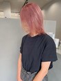 ブリーチカラー、ピンクヘア、コーラルカラー、コーラルピンク、ミディアム