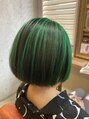 耳から前はブリーチでしっかり色を抜いた後に、カラーバターで!グリーン★くしで少し上の髪の毛を後ろにとかすと、ハイライトとような筋筋に(^^)色々楽しめます!