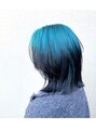 毛先の黒を活かして上はターコイズのルーツカラー!黒染めしているけれどカラーを楽しみたい方は是非!