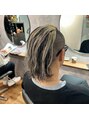 - 全体の半分以上刈り上げて3cmほどカットしました!2回メッシュをブリーチして紫シャンプー仕上げしてます!