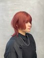 ウルフカット ウルフヘア ピンクオレンジ オレンジカラー
