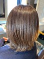 ハイライトを細かくいれ、明るいカラーにすることで白髪をキレイにぼかすことができます。そしてボブベースにレイヤーを入れることで軽さをだしました。