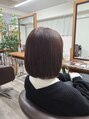 ブリーチなしで作るモノグレージュカラーをミディアムボブにオン。やわらかい透明感◎ ※お髪の状態により、Wカラーが必要な場合がございます。