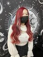 地毛を赤に染めてミディアムの地毛をエクステでロングに!白メッシュもエクステです♪