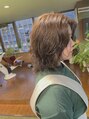 ウルフべースのパーマ履歴スタイルに、寒色ベージュカラーです。ほんのりカーキ。オリーブベージュで明るめな雰囲気です。
