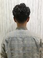 ツーブロックショートのメンズパーマスタイル。パーマは少し強めにかけてかきあげた時に流しやすくしました。