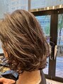 オシャレなウルフミディアムヘア。全体的なシルエットはふんわり丸くエレガントに仕上げつつも、毛先の外巻きにすることで都会的なクールさをミックスしたスタイルに。肌なじみの良いオレンジブラウンのカラーで、血色感と明るさもプラスできます。
