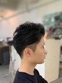 周りはスッキリと刈り上げて、トップは長めに売り祖rに流しやすくカットしました。クセを生かしてパーマはかけずに仕上げました。清潔感があるうえ、きっちりとした見た目になるのでビジネスシーンにもおすすめです。