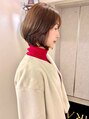 ふんわりボブは重めに入れたレイヤーが大事◎ワンカールでスタイリングしやすいようにカットしています。重さと軽さがある丸みボブスタイル、やや前下がりなので耳かけすればスッキリとショートっぽくなります。カラーはベージュで肌馴染みよく☆