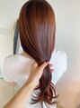 ブリーチを使わない暖色カラーレッドピンクカラーで深みのあるカラーへ◎