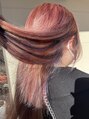 ブリーチベースに淡いピンクに抜きっぱなしとバイオレットでインナーハイライ結んだりしても巻いても可愛いカラーです^^