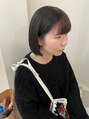 前髪の赤いインナーカラーがデザインポイントのボブヘア。前回気に入ってもらえての今回もリピート。さらに今回はブリーチもして鮮やかに濃く赤を入れてます。黒髪ボブとの相性が最高に可愛いです(^-^)