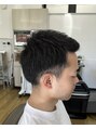 ツーブロックスタイルサイド~バックにかけて6mmバリカンで刈り上げ、刈り上げ部分を見せてツーブロックスタイルを際立てる。フロントアップにして清潔感UP!