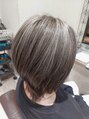 白髪ぼかしハイライトカラーレイヤーボブアッシュ暗めカラー