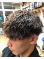 無造作なツイストの束間がカッコイイです。強めのパーマ特有、ボリュームが出過ぎないよう、扱いやすいようにベースカット、セニングでフォルムコントロールもしてます。