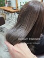 ブリーチなしで作るフォギーベージュを、プレミアムトリートメントで最高ケア。透明感、まとまり◎ ※お髪の状態により、Wカラーが必要な場合がございます。