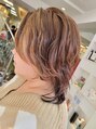 フロントにハイライト、襟足にロウライトを入れたデザインカラーフロントにデザインを入れる場合は、印象が大きく変わるので慎重に入れます!