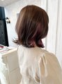 こっくり色味のショコラブラウンとインナーピンクが相性バッチリ◎巻き髪するとのぞかせるピンクが可愛すぎます(o^^o)バッサリイメチェンで肩ラインのボブは、厚みは残しつつ量はしっかり減らすことで扱いやすい(^^)トリートメントでツヤツヤです!