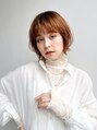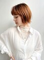 顎くらいの大人ショート、ミニボブ。オレンジベージュカラーで、透明感と柔らかい印象になれます。オイルバームを髪全体に馴染ませるだけのツヤ髪になれる簡単スタイリング。ハイライトを入れて透明感をプラスすることもできます。