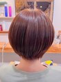 サイドをしっかりと切り込んだオシャレ系ショートカラーはピンクベージュでスリークなショートとの対比で柔らかいカラーになってます。
