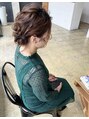 メニューは結婚式お呼ばれアレンジ。人気のギブソンタックをルーズな質感に表現させていただきました。早朝や時間外のご予約はお電話にてお問い合わせ下さい。