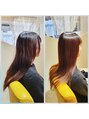 ストレート履歴がないお客様でしたがブリーチ一回、カラーの履歴があり他店のアルカリ剤が髪に残留しているためアルカリ除去や髪の強化をして自然な仕上がりで酸性ストレートをさせて頂きました。