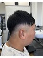 フェードカット(0.8mm )ツーブロック(右サイドのみ)フロントをアシンメトリーにカット、右側へ流します。