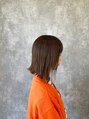 肌馴染みのよいブラウンベージュとアレンジしやすい長さの切りっぱなしボブで大人っぽいスタイルです。