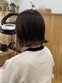 肩上にカットした人気の外ハネボブ♪カラーはピンクブラウンに☆