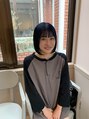 ブリーチしてネイビーに近いブルーにしました♪カットは切りっぱなしボブでとても相性のいいカットカラーです^^