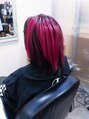アンブレラからインナーへ。ブリーチ2回で抜いていきます。途中で発覚した黒染めがかなり強く、抜け切ることが出来ませんでした。今回はレッド系だった為、助かりましたが、黒染めはベースによって一度では抜けない事もあります。