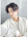 人気のセンターパートのメンズスタイル です。ナチュラルな雰囲気とニュアンスカールがオシャレな雰囲で、ドライな質感もポイントです。