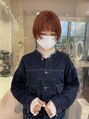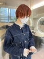 顔まわりのレイヤーがポイントの、ショートスタイル。骨格に合わせて長さを設定します。カラーは1ブリーチの、深めオレンジ。