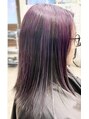 人生初ブリーチ!全頭ブリーチは勇気がいるけど、派手髪したい!を叶えるべく表面のほんの1部だけしっかり1ブリーチ。流行のアンブレラカラーで地毛の黒髪と馴染みの良いパープルをオンカラー。全頭よりモードなオシャレ感が○。