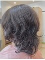 マッシュベースのウルフショートレイヤー。縮毛矯正で根元を整え、毛先にランダムなニュアンスパーマを。スタイリングしやすく時短ドライに。
