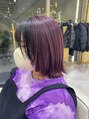 レイヤーカット×デザインカラー顔まわり切り込んだスタイルに、顔まわりのワンポイントブラックがカワイイ!全体はピンクバイオレットカラー☆