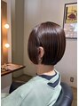 ストレートな髪質を活かしたコンパクトなボブスタイル。透明感と艶感にこだわったカラーリングでオイルを馴染ませるだけで決まるボブ。襟元が詰まってくる冬の装いに相性の良いスタイルです